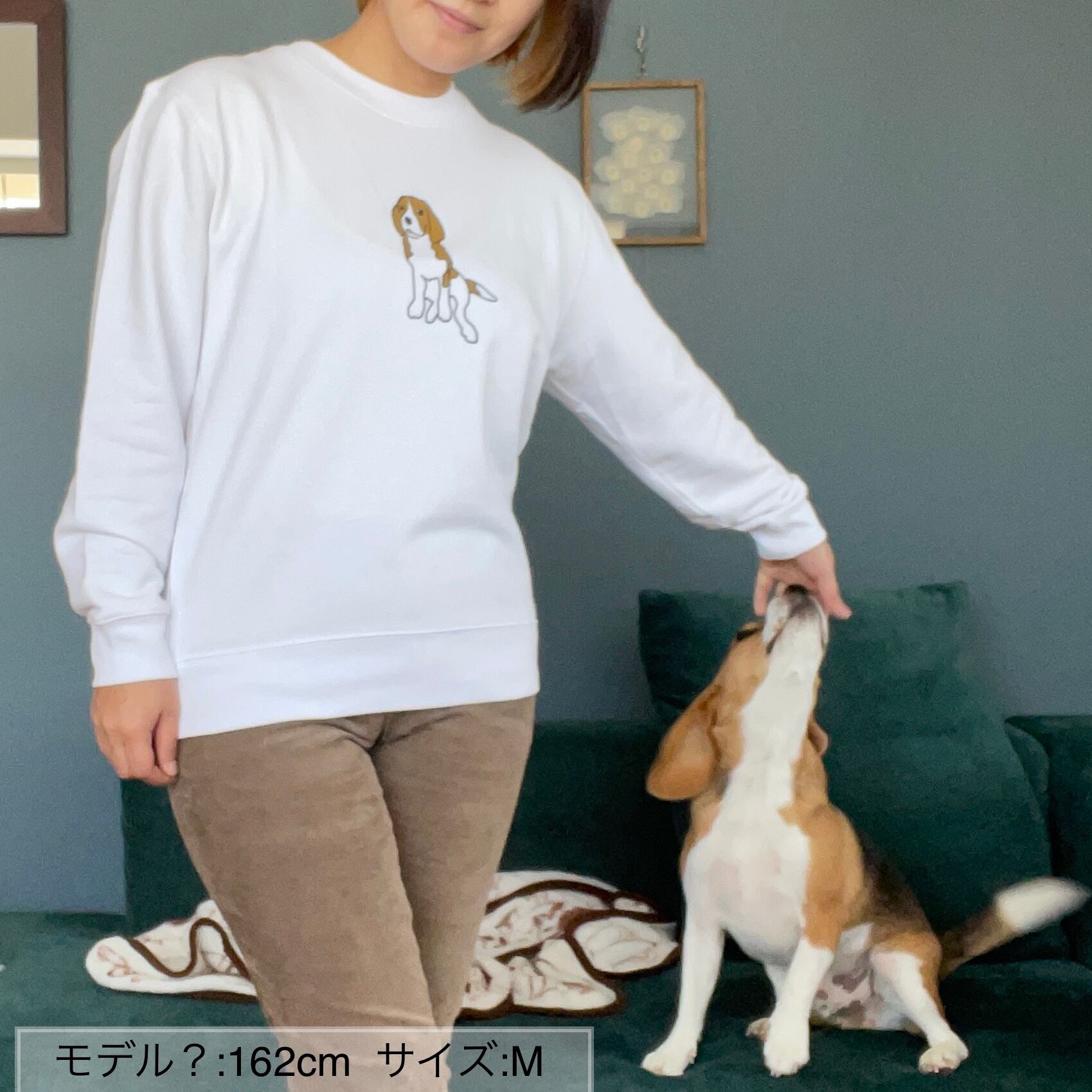 お座りしたロッキーのイラストが胸元にシルクプリントされたスウェットです。