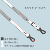 金具の色、革の色、サブハンドルの取り付け位置をお選びいただきカスタムオーダーでお作りいたします。