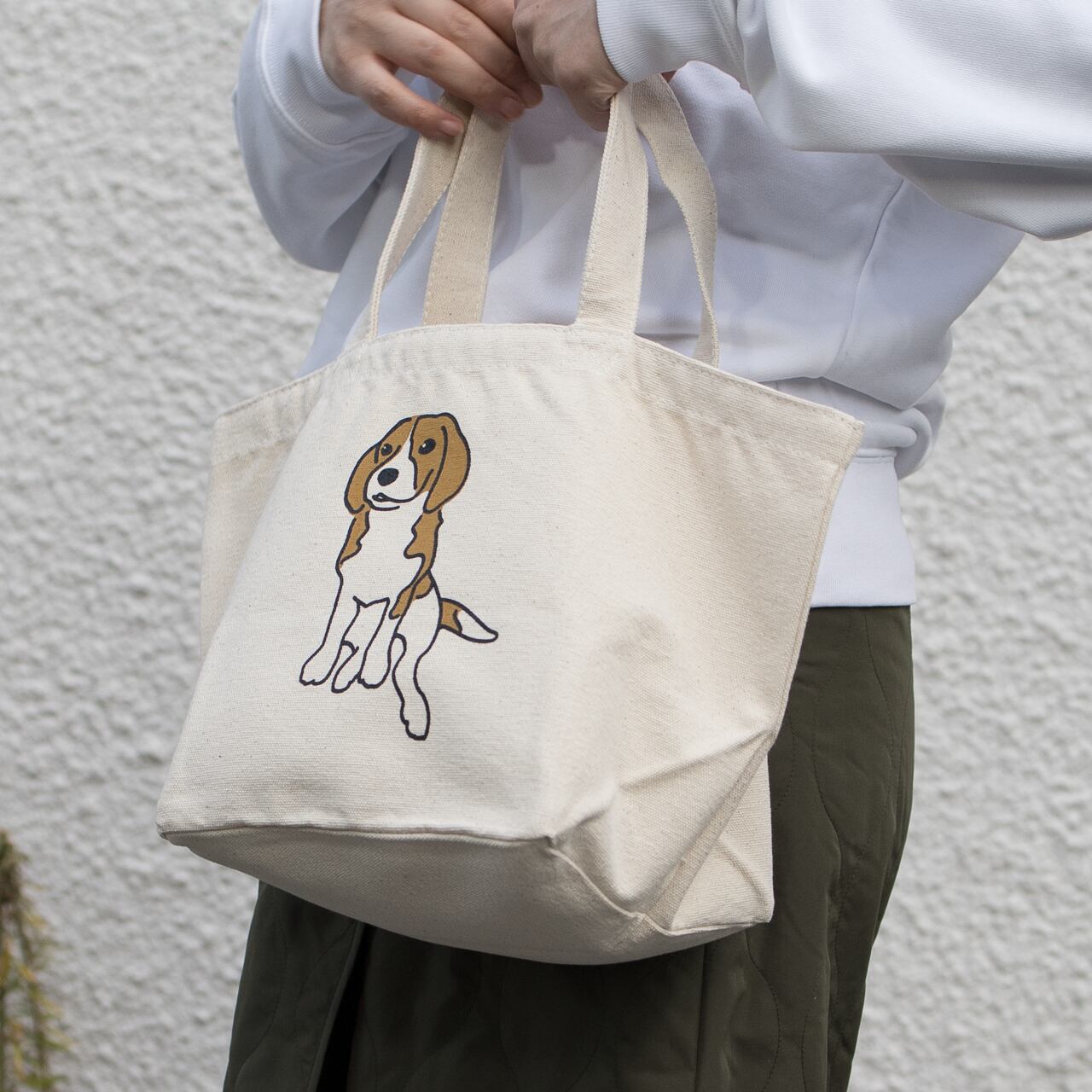 愛犬とのお散歩にもちょうどいいサイズの厚手のキャンバスバッグです。