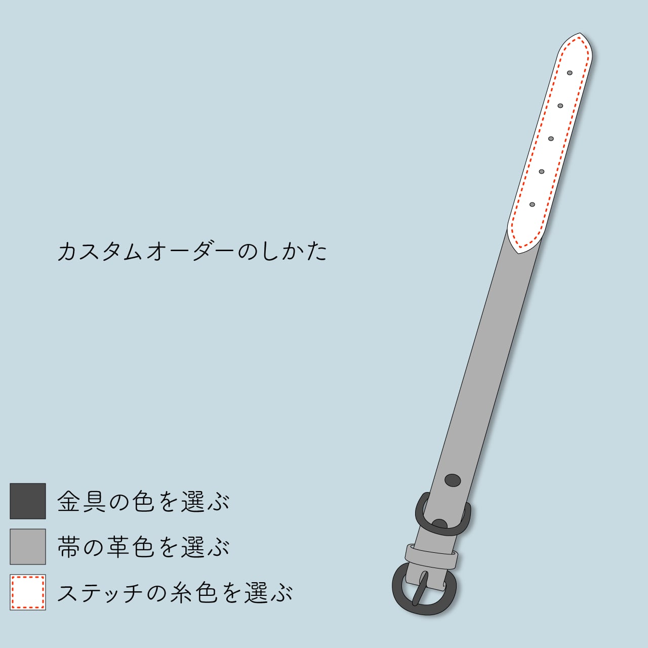 金具の色、革の色、ステッチの色をお選びいただきカスタムオーダーでお作りいたします。