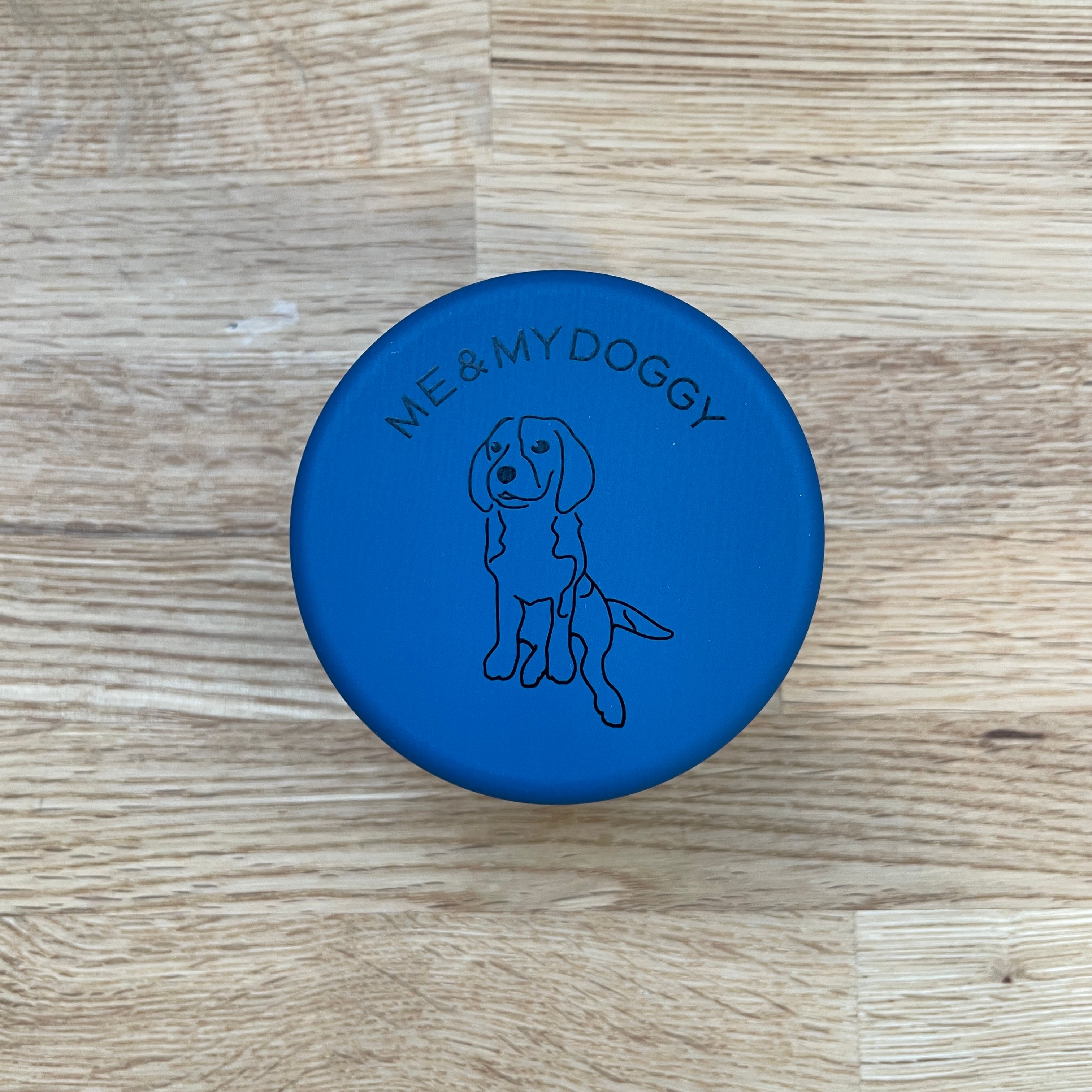 愛犬のためのオヤツを入れて携帯するのに便利な缶カンです。