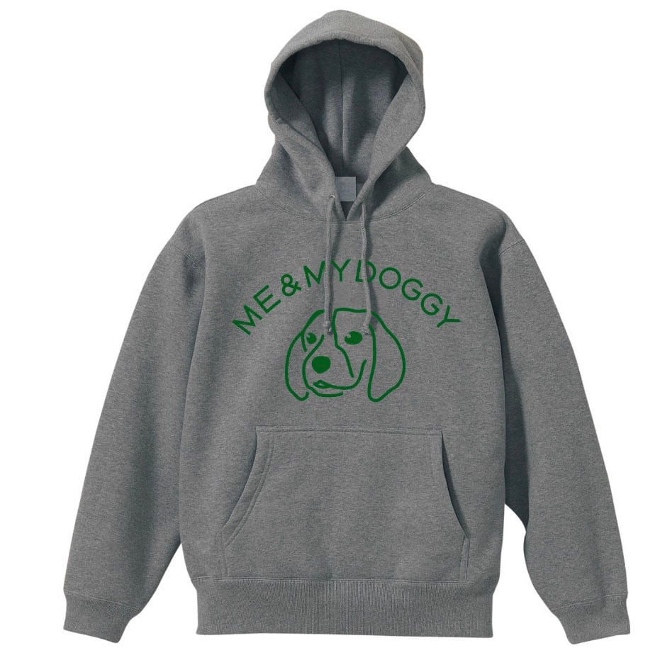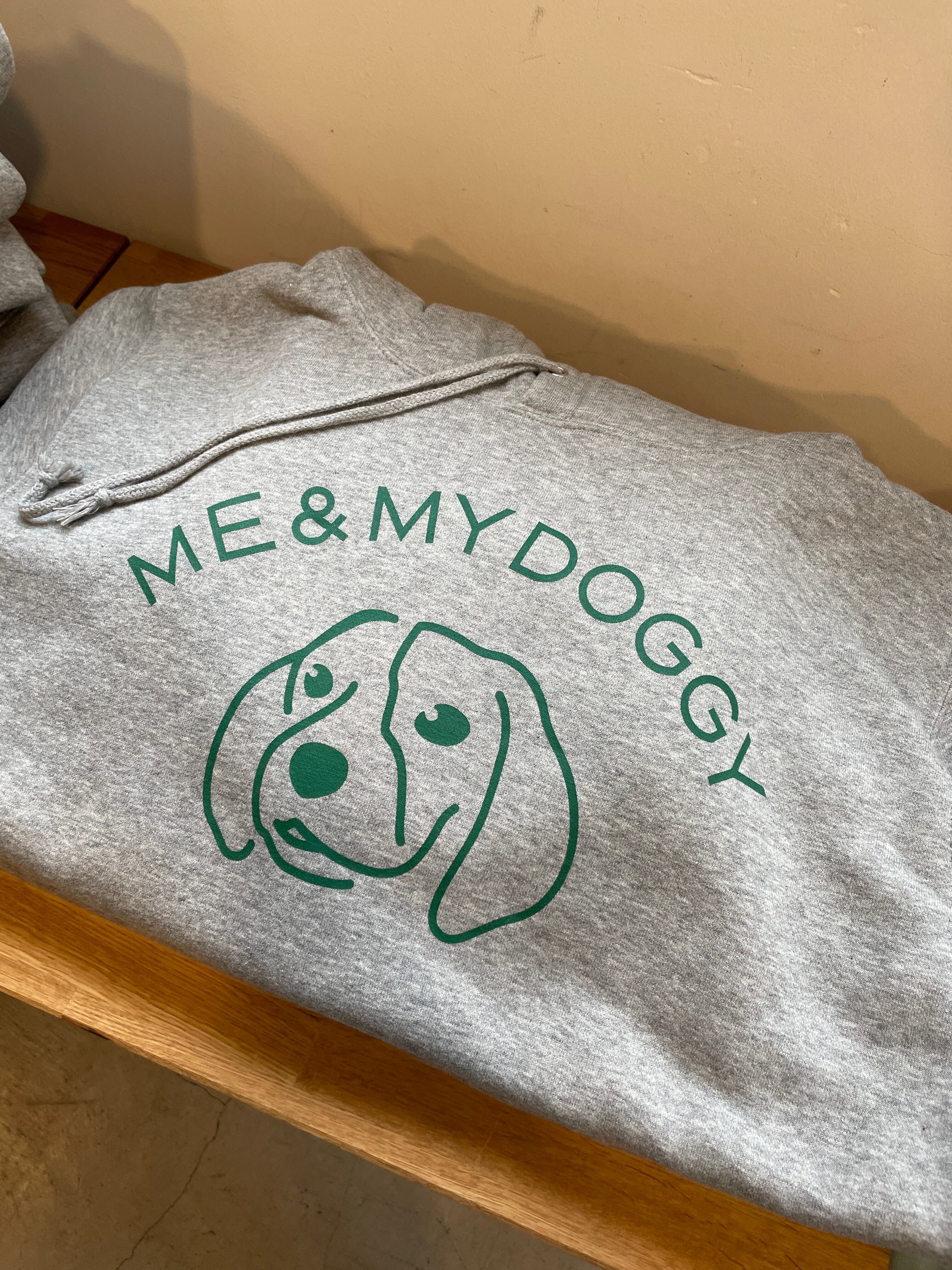 ロッキーのイラストとME&MY DOGGYのロゴが胸元にシルクプリントされたフーディーです。