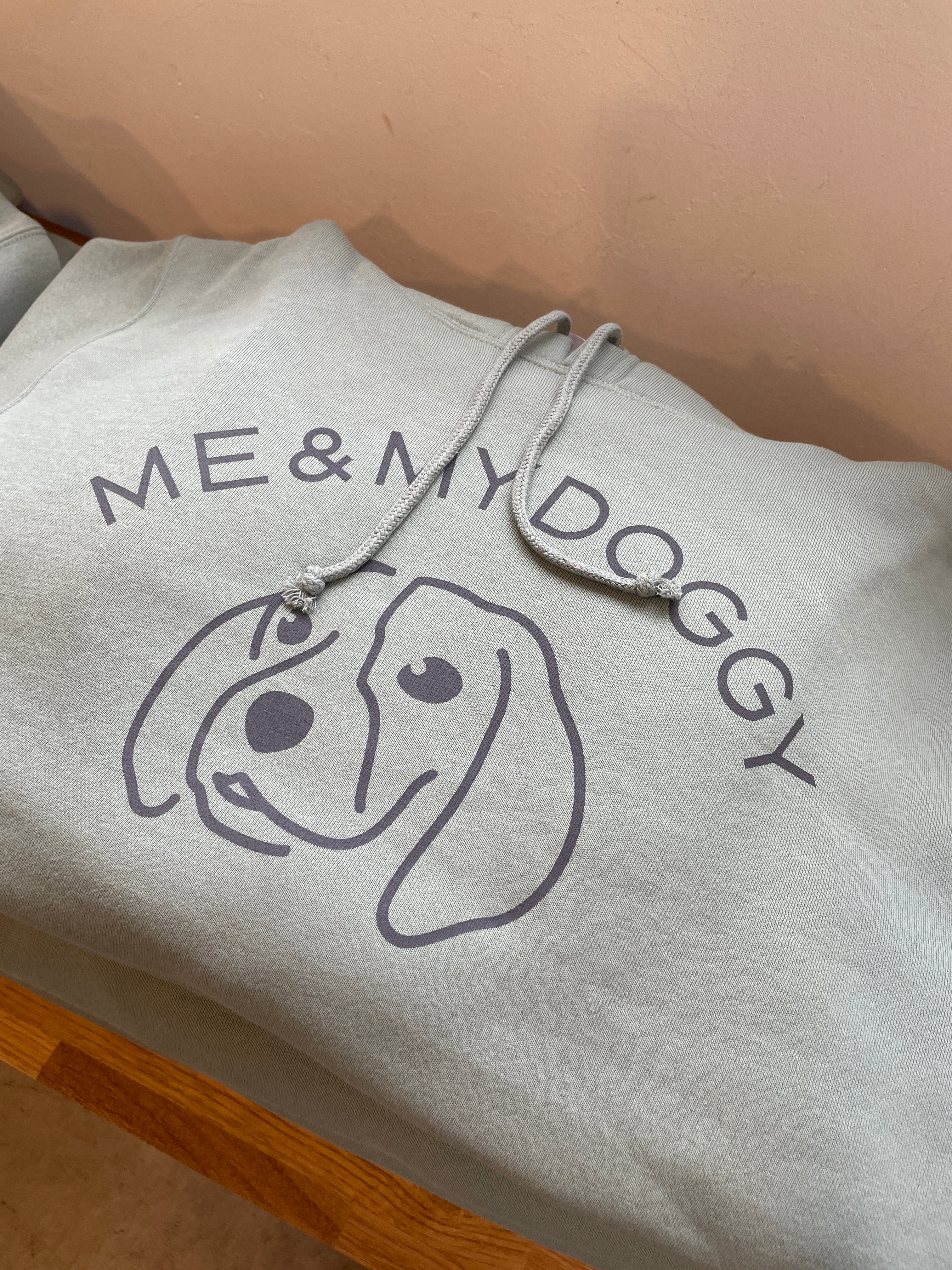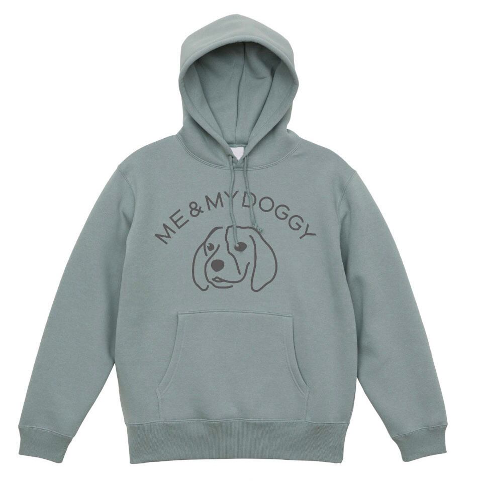 ロッキーのイラストとME&MY DOGGYのロゴが胸元にシルクプリントされたフーディーです。