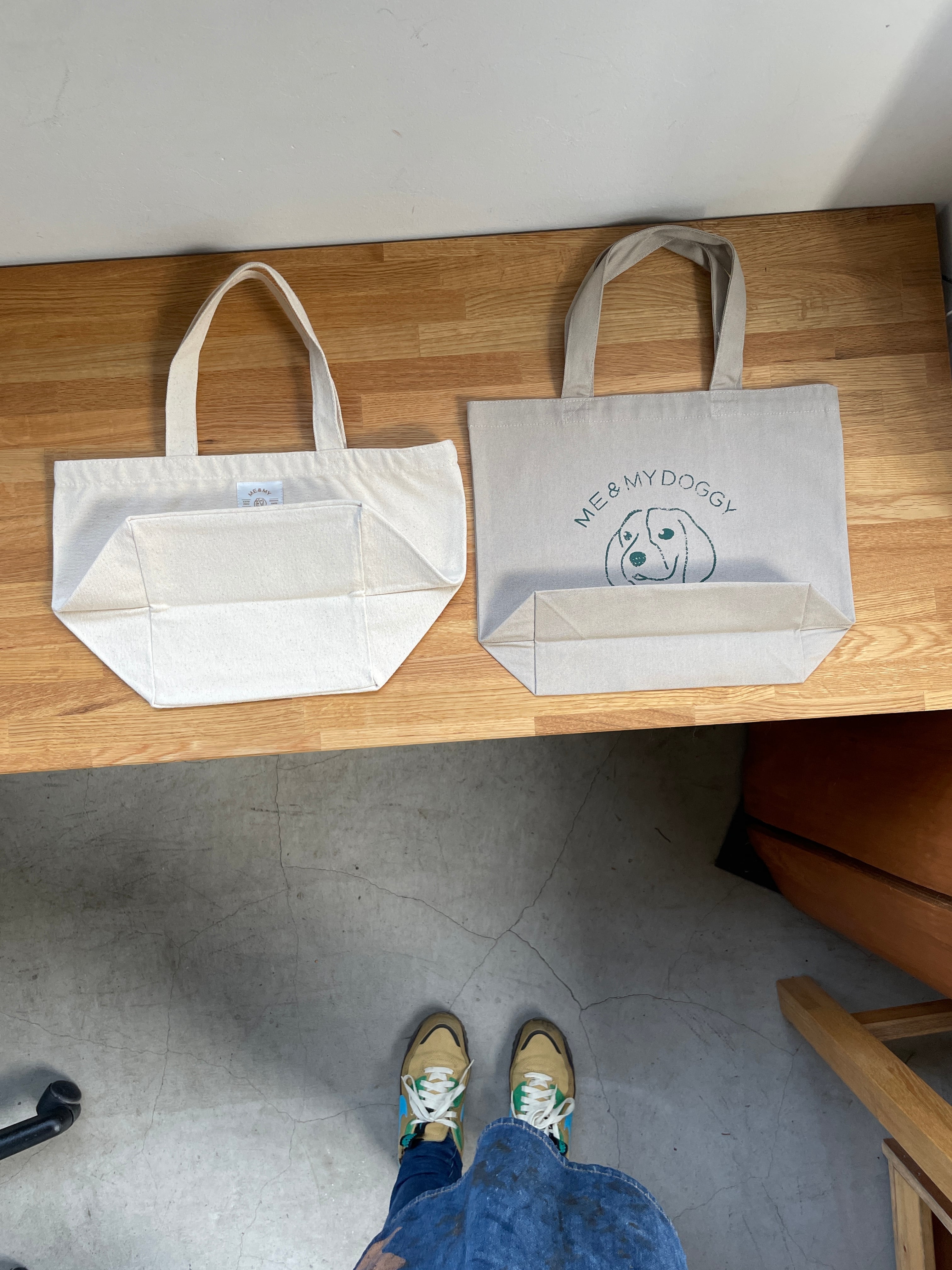 「キャンバスミニトート」より高さは高く、マチは狭めです。布地も軽か柔らかです。(写真参照)